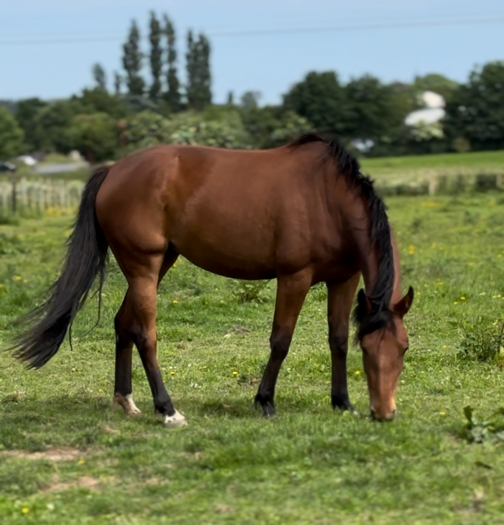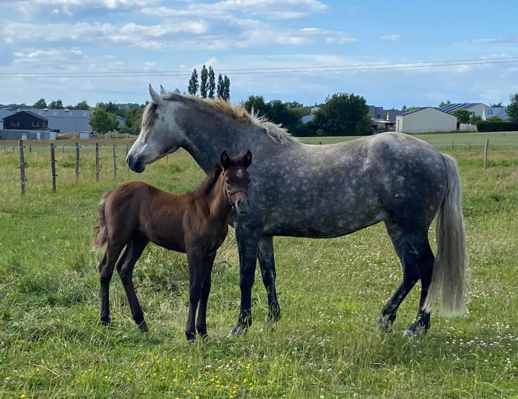 Jument Selle Français Originel, née en 2021 par Rock’N Roll Semilly & Tirelire du Golfe (Dollar dela Pierre).